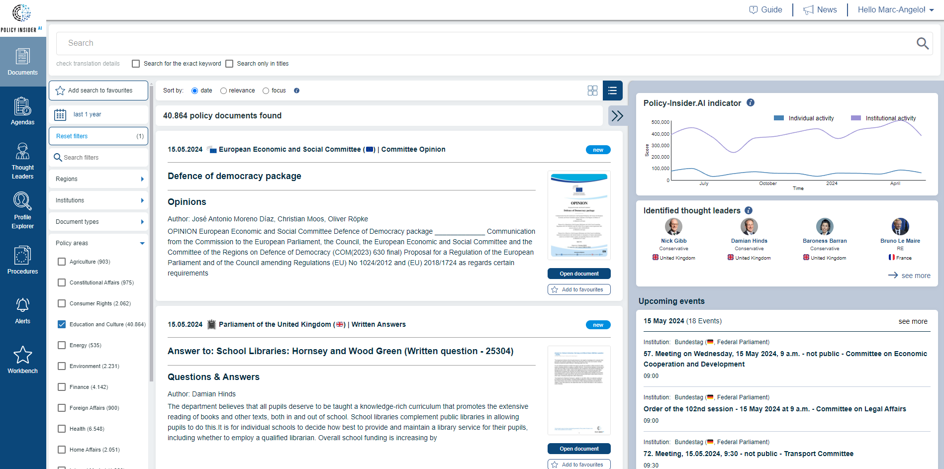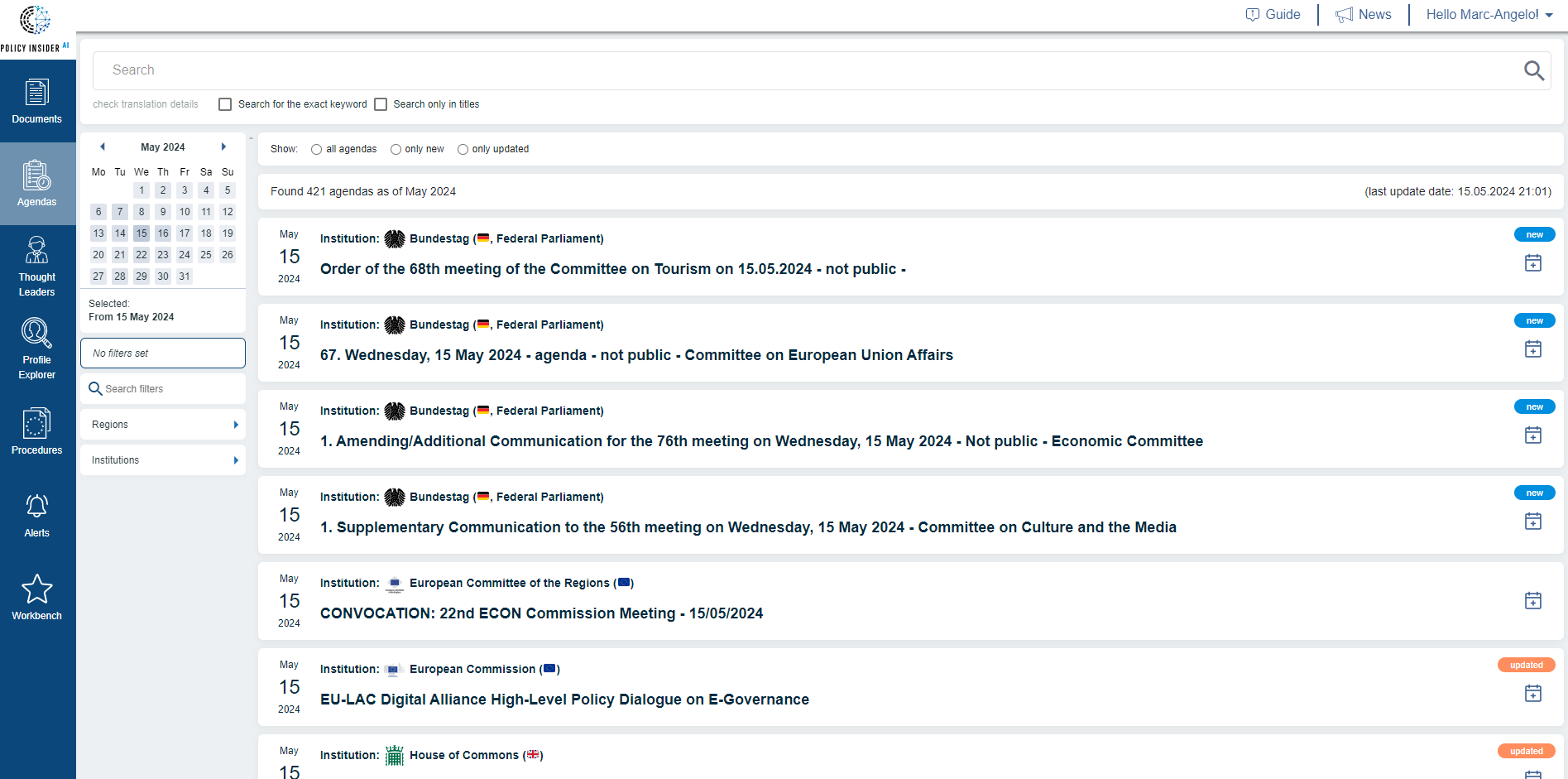 The Policy-Insider.AI web app provides direct access to a large, structured database of policy and regulatory documents, combined with alerts across institutions and jurisdictions.